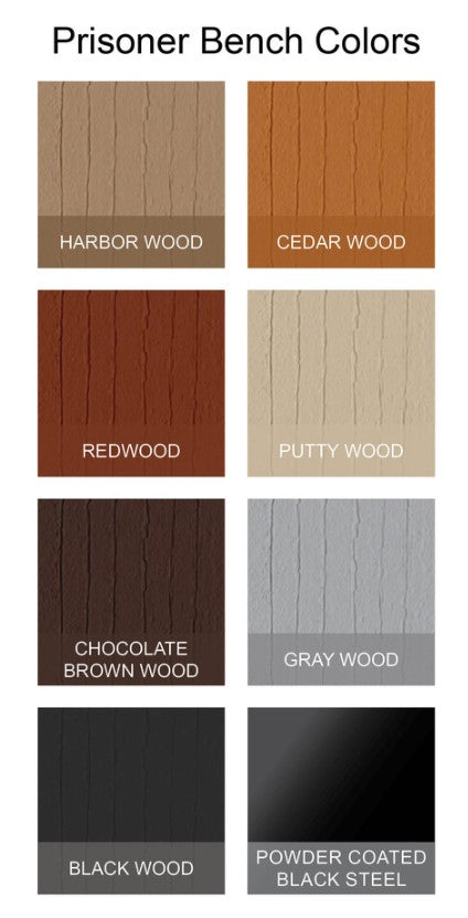 - Bench seating and backrest surfaces are made using either solid steel or Lumber Rock composite seating material, in your choice of color